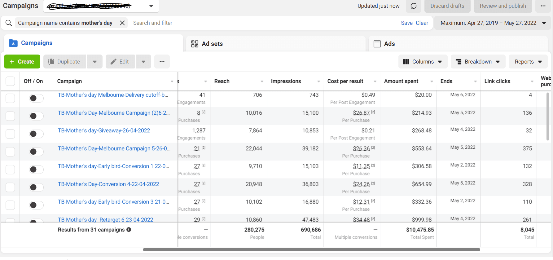 Tastebuds had strong demand but inconsistent paid ad performance across multiple accounts. Their ROAS fluctuated, campaigns weren’t aligned to a proper funnel structure, and creative fatigue was limiting conversion growth.